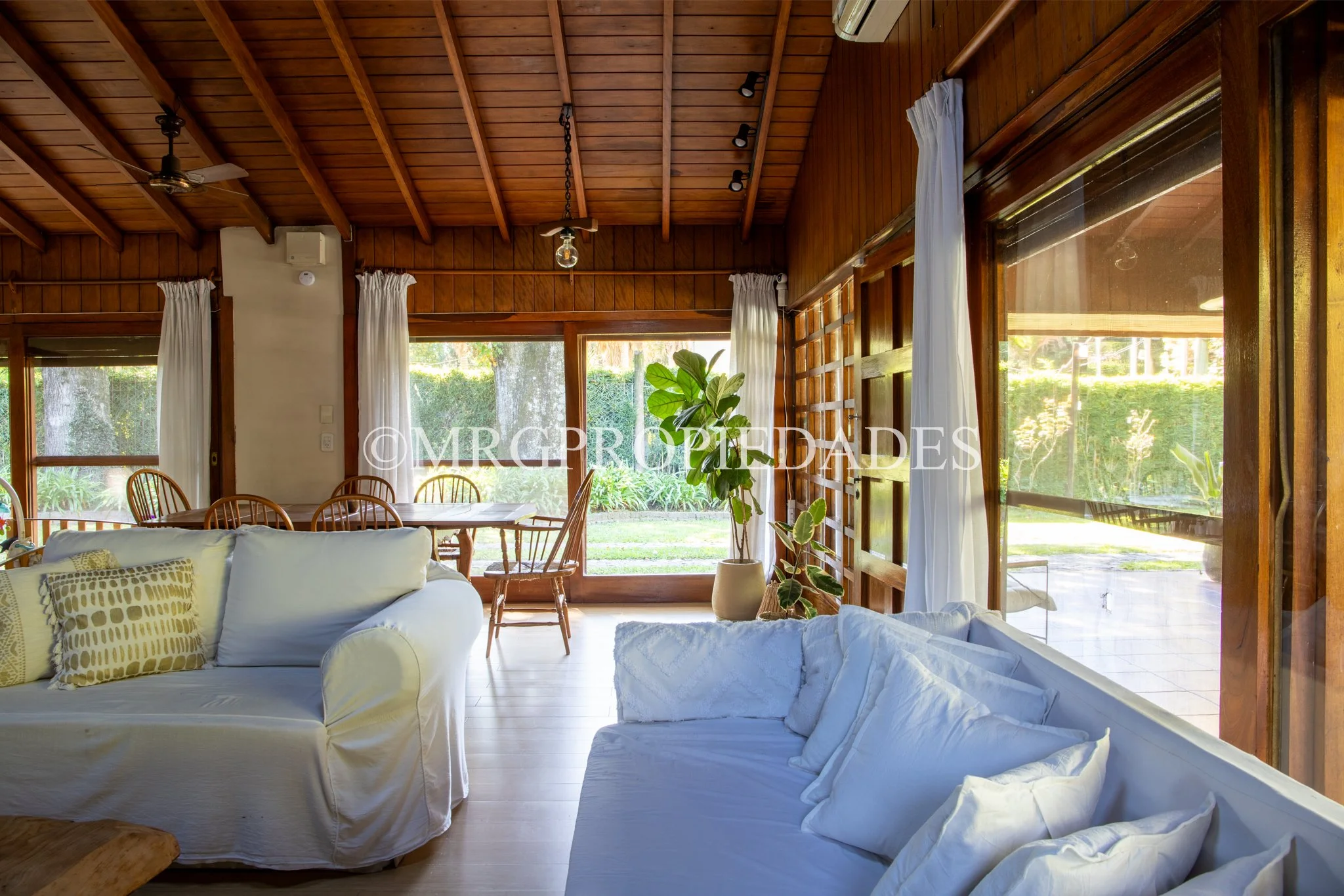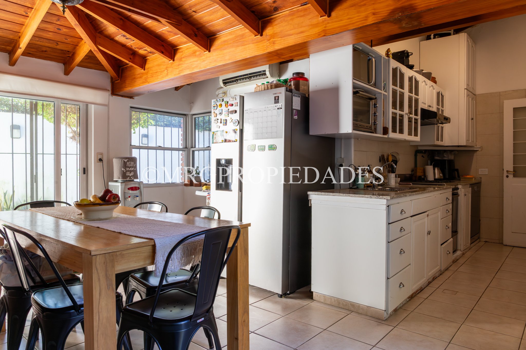 El living con chimenea y el comedor se presentan como los espacios principales. La cocina cuenta con comedor diario y baño de servicio, acompañando el uso cotidiano.